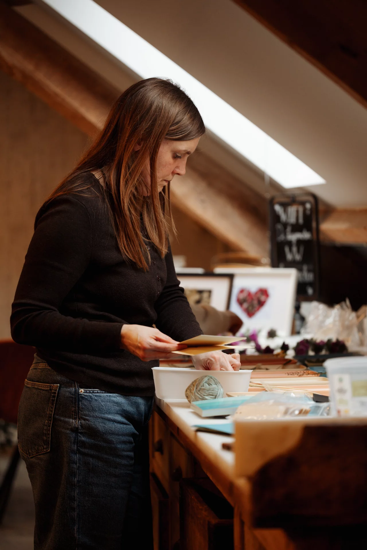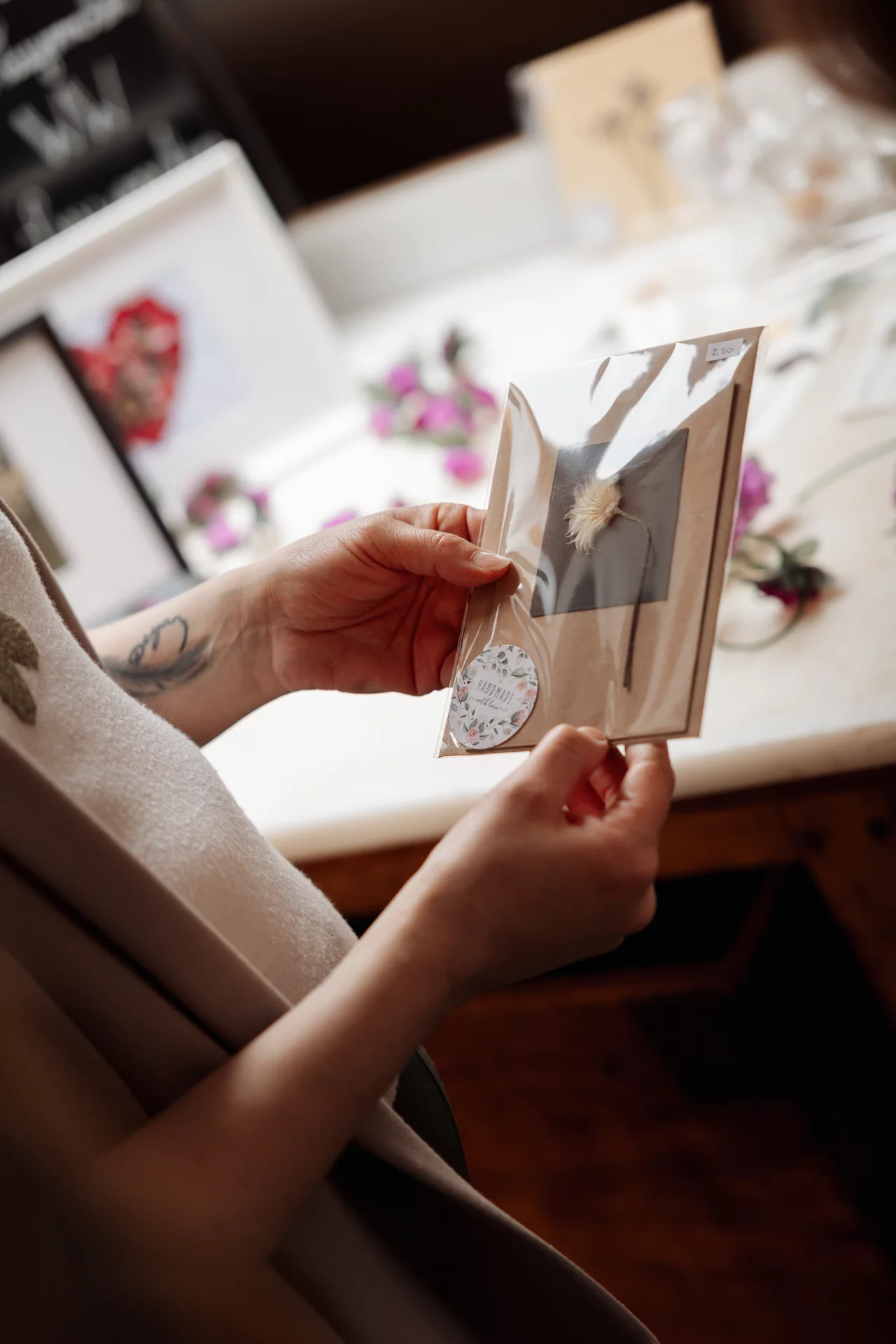 een paar wenskaarten of boekenleggers. dit door het verwerkingsproces.
